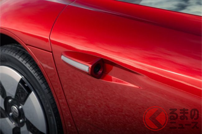 「ではどうやって左右を確認するのか?」というと、ドアにはカメラが設置されており、ドアの内側に設けられたモニターで左右と後方を確認します。
