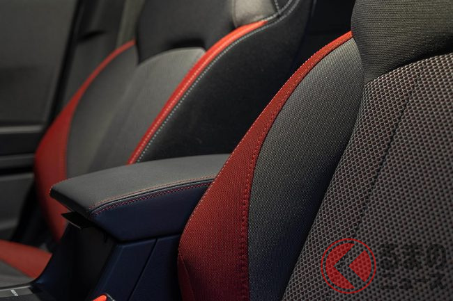 インテリアは、カーボン調インナートリムや赤いボルスターが付いたサポート性の高いスポーツフロントシート、アルミペダル、本革巻きのステアリングホイールとシフトノブ、RSロゴ入りカーペットフロアマット、リアセンターコンソールの照明付きUSB-AおよびUSB-C充電ポートなど、最上級グレードに相応しい特別感のある内装を実現しました。