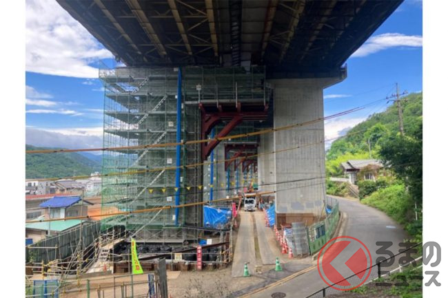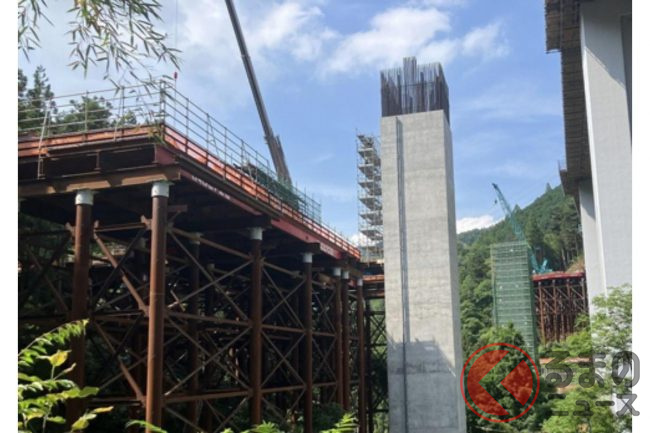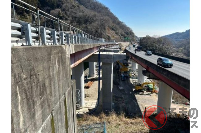 中央道の「“破滅渋滞”スポット」解消に一歩前進! ほぼ毎日混んでいる「小仏トンネル」に「新トンネル」開通へ! 「巨大橋脚」がほぼ完成! 工事はどこまで進んだのか