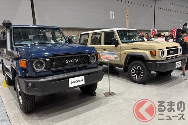 2025年7月11日より13日まで、Gメッセ群馬(群馬県高崎市)で開催された「群馬パーツショー2025」にて、海外仕様のトヨタ「ランドクルーザー70(以下、ランクル70)」が出展されました。