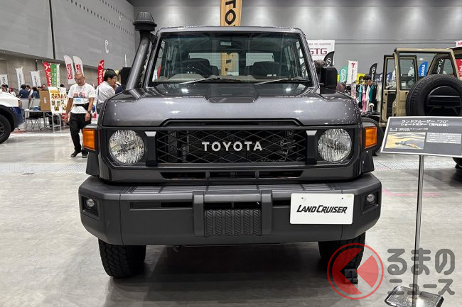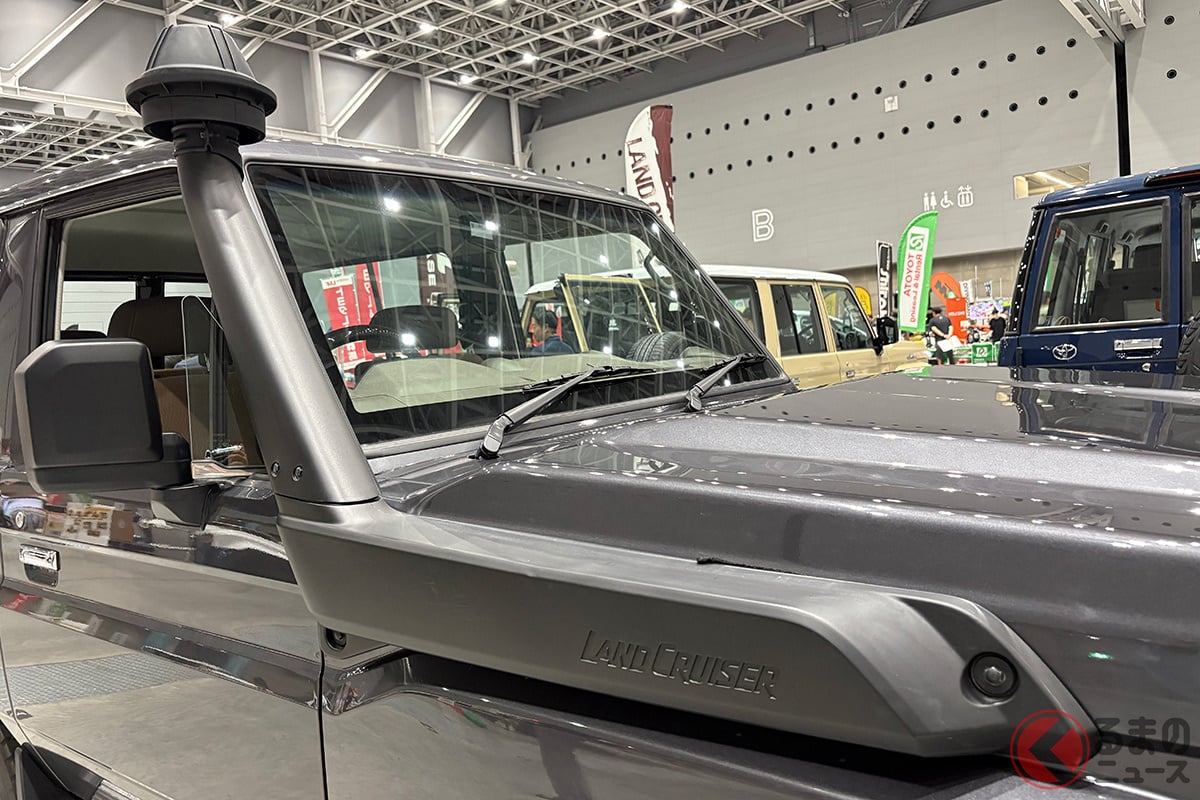 2025年7月11日より13日まで、Gメッセ群馬(群馬県高崎市)で開催された「群馬パーツショー2025」にて、海外仕様のトヨタ「ランドクルーザー70(以下、ランクル70)」が出展されました。