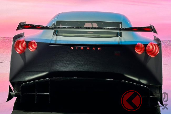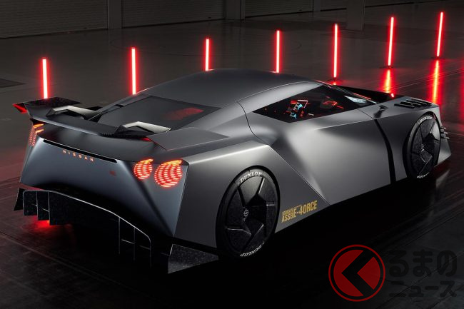 日産「次期型GT-R!?」 ド迫力エアロ×丸目4灯テールの「国産スーパーカー」コンセプトが凄かった! 1300馬力超え×「高性能4輪制御」搭載の「ハイパーフォース」に期待