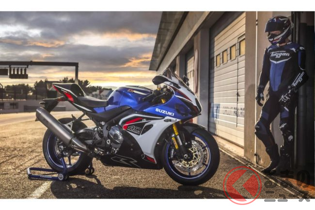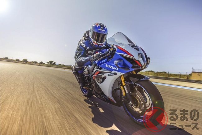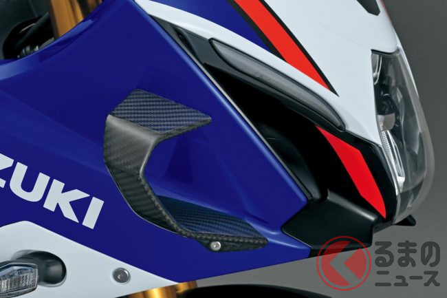 スズキ新型「GSX-R1000」初公開! 新たな「スポーツバイクの皇帝」は「ウイング」装備&“パワーアップ”したエンジン搭載! 伝説の「スーパースポーツモデル」40年目の大幅改良を実施