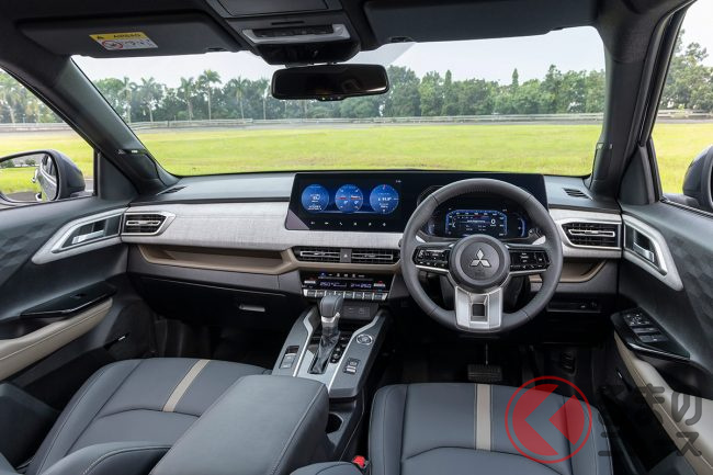 フロントマスクには、三菱のデザイン言語「ダイナミックシールド」の進化版が採用され、T字型のLEDデイタイムランニングランプがワイドで安定感のある印象を与えています。