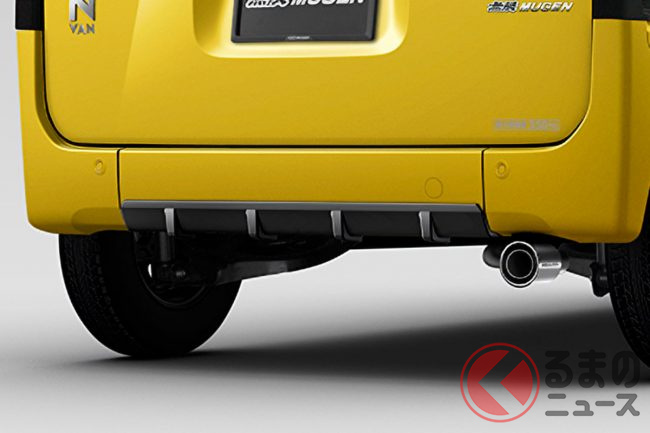 ホンダ「軽商用バン」めちゃスポーティな「無限バージョン」がスゴい! 存在感あるブラックエアロ×スポーツマフラーの本気モデル! カスタム仕様の「N-VAN」とは!