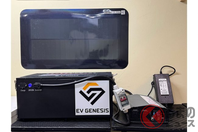 さらに、75Ahの走行用バッテリーに加え、車両に90Ahの「電配用バッテリー」を搭載することで、車両に備わるソーラーパネルで充電した電力を貯め、災害時に被災地に電力を届けることも可能になっています。