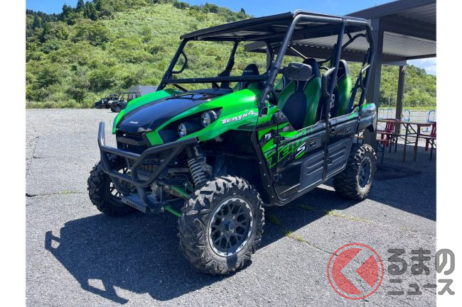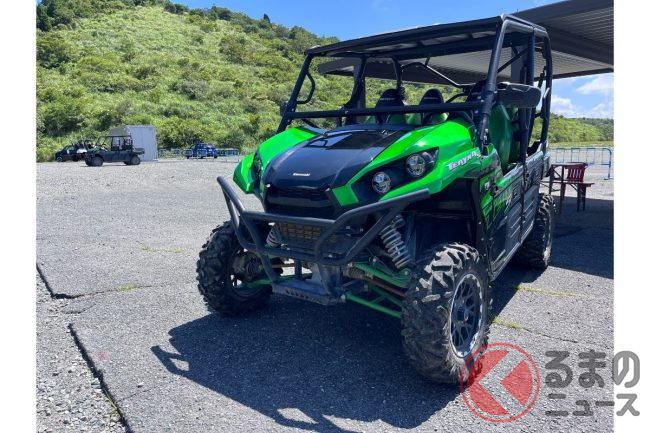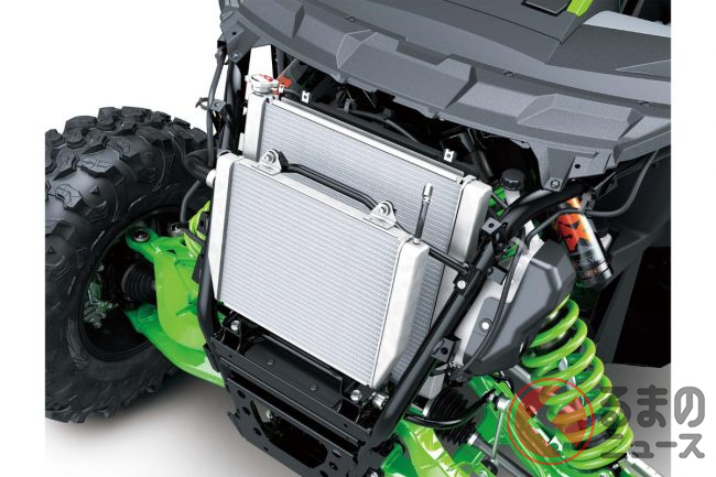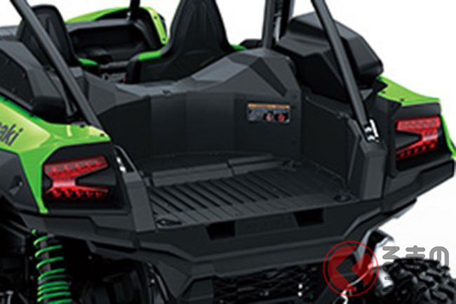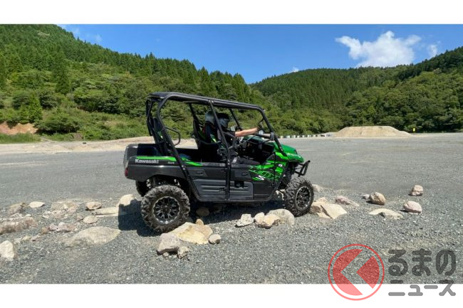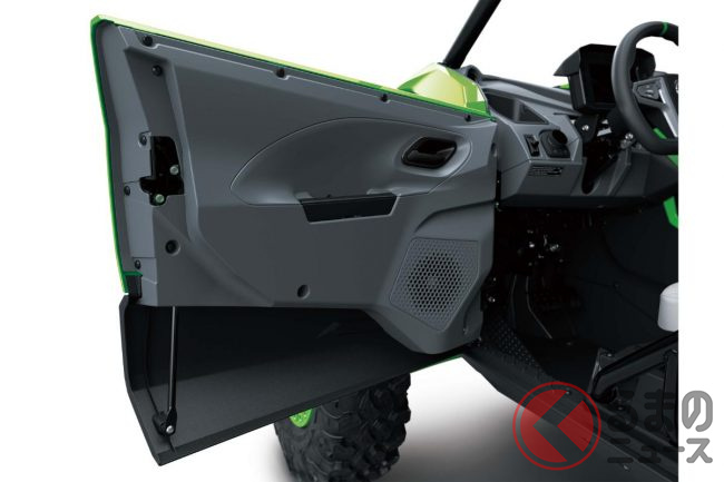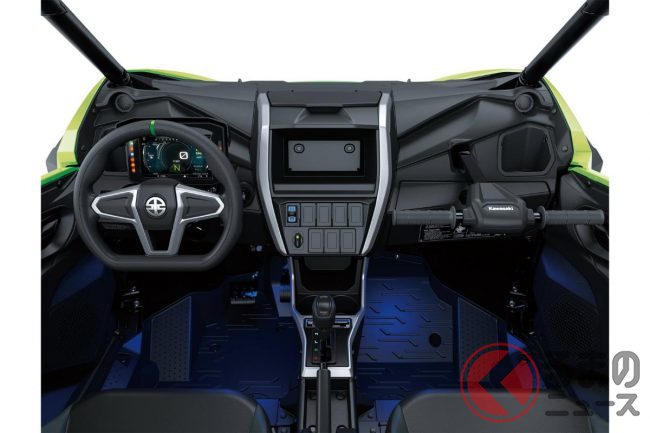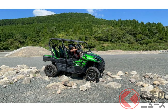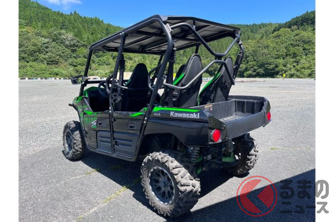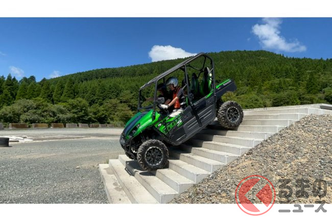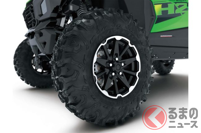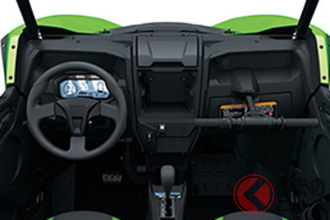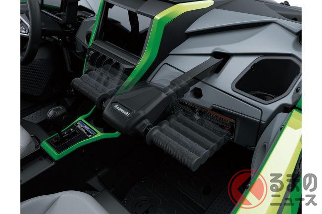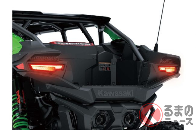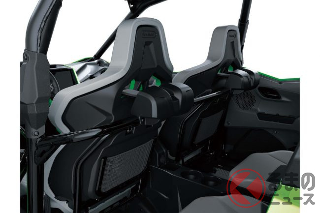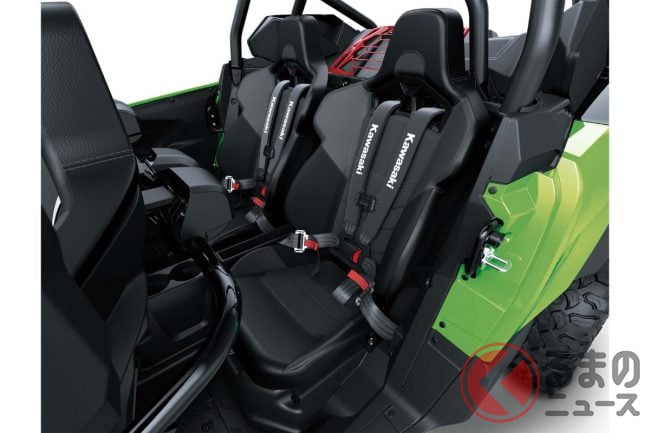 カワサキ新「“5人乗り”スポーツモデル」発表! 全長4m級ボディ×「ニンジャ」の1Lエンジン搭載! 斬新ハンドル&精悍顔がカッコイイ「四輪オフロード車 新TERYX」発売、米国から順次導入