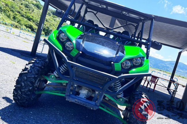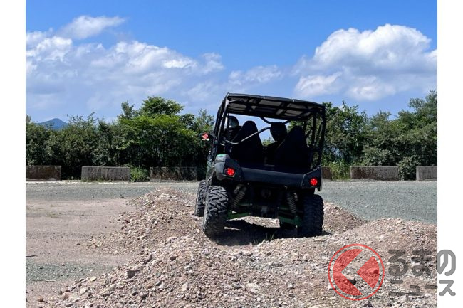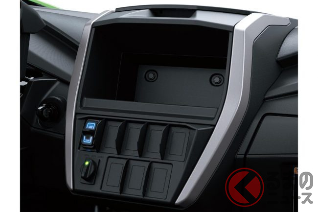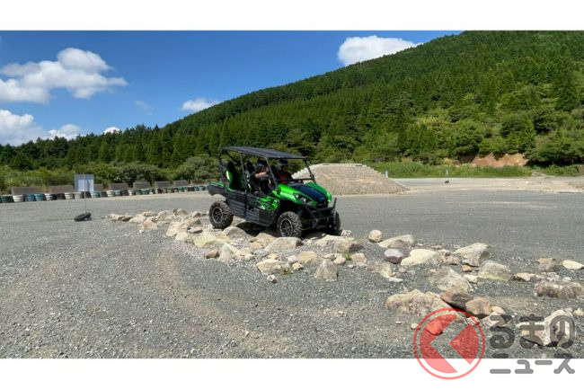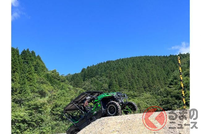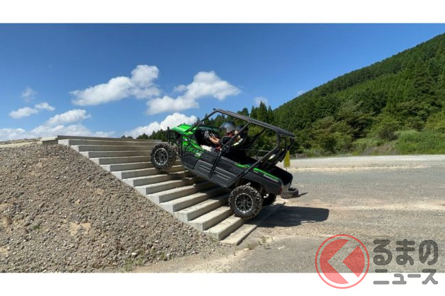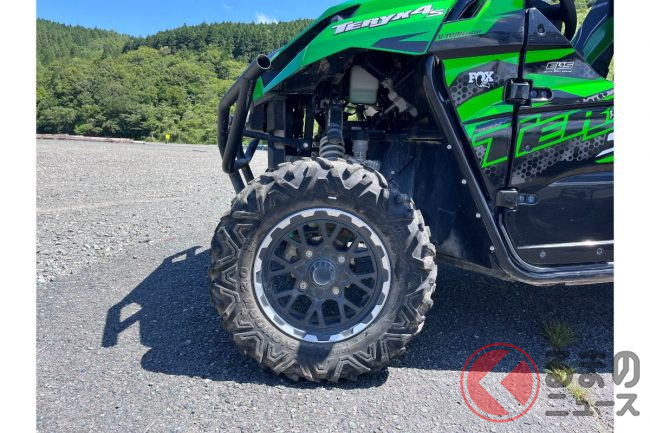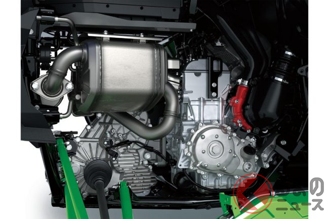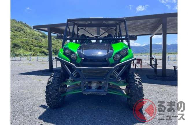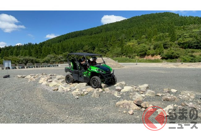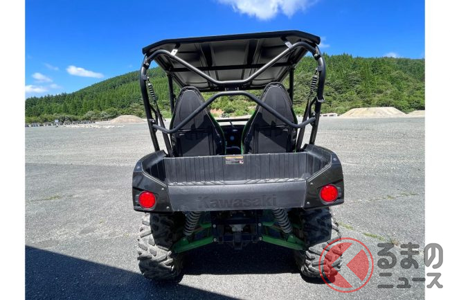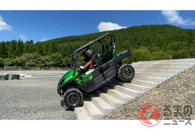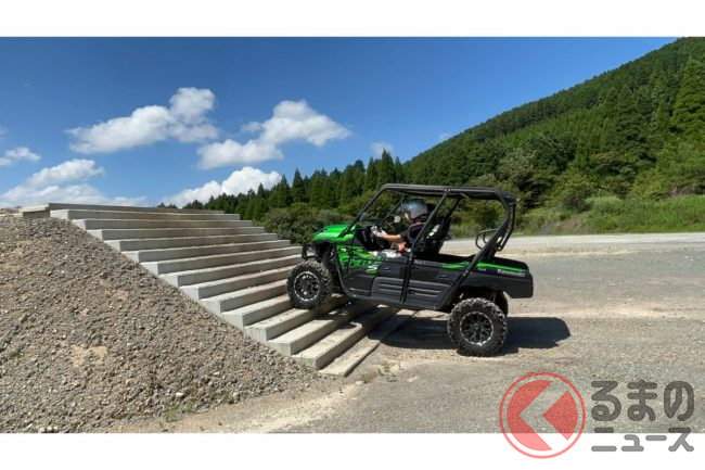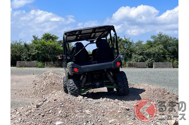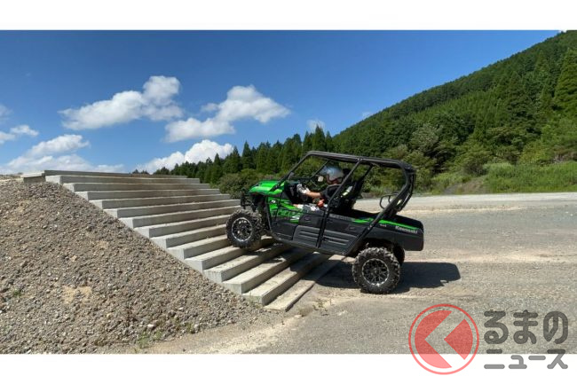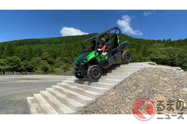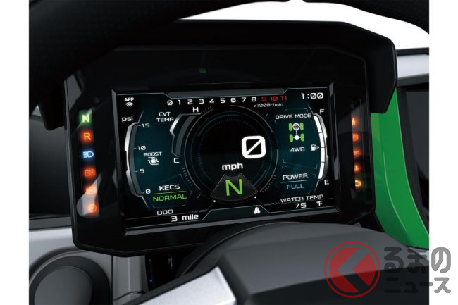 カワサキ新「“5人乗り”スポーツモデル」発表! 全長4m級ボディ×「ニンジャ」の1Lエンジン搭載! 斬新ハンドル&精悍顔がカッコイイ「四輪オフロード車 新TERYX」発売、米国から順次導入