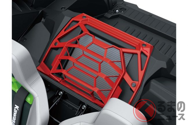 搭載されるパワーユニットは、最高出力253馬力・最大トルク198.3Nmを発揮する999ccの4ストローク4気筒エンジン。同社のスポーツバイク「ニンジャH2」に搭載されるものと同型で、サイド・バイ・サイド車に適合するように専用改良を施しています。