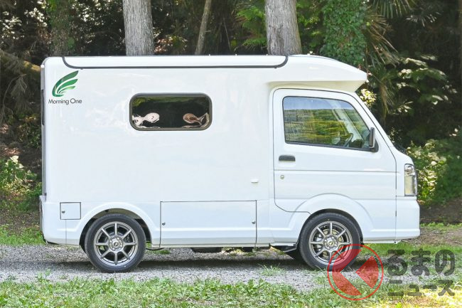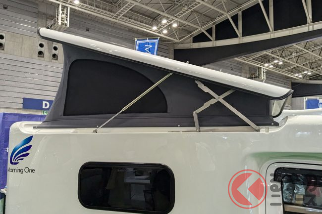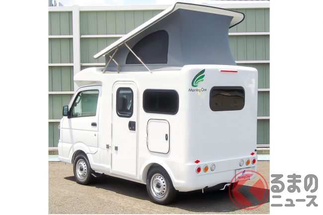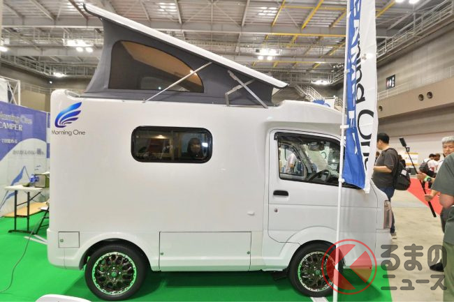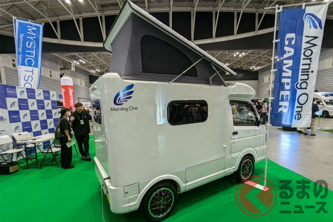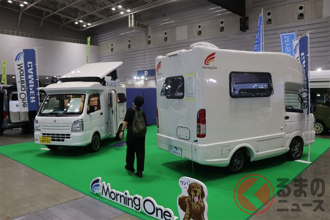 新相武(神奈川県愛川町)が出展していた「モーニングワン キャンパージャスト」も、そんな軽自動車をベースとしたキャンピングカーとして注目を浴びていました。