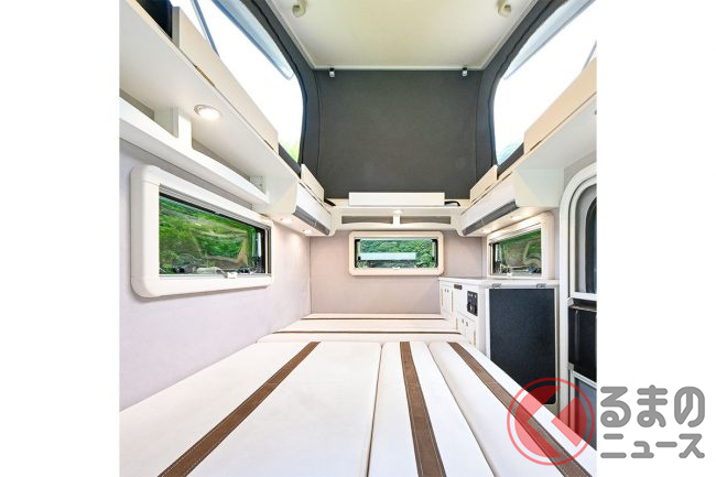 そのほか12Vクーラーやサブバッテリー、1500Wインバーター、走行充電システム、外部電源システム、ACコンセントといった装備も標準となった上で、368万5000円から(消費税込み)という価格に抑えているのも魅力的です。