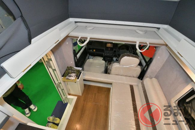 特にこのモーニングワン キャンパージャストには、ポップアップルーフを備えることで、ルーフ部分に2名、居室部分に2名のベッドスペースを確保しています。