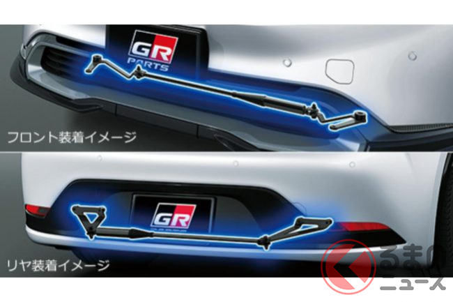 たとえば、「GRフロントスポイラー」(6万500円/消費税込み、以下同)は、専用の樹脂製デザインにより車両全長を約14mm延長し、フロントに引き締まった印象を与えます。