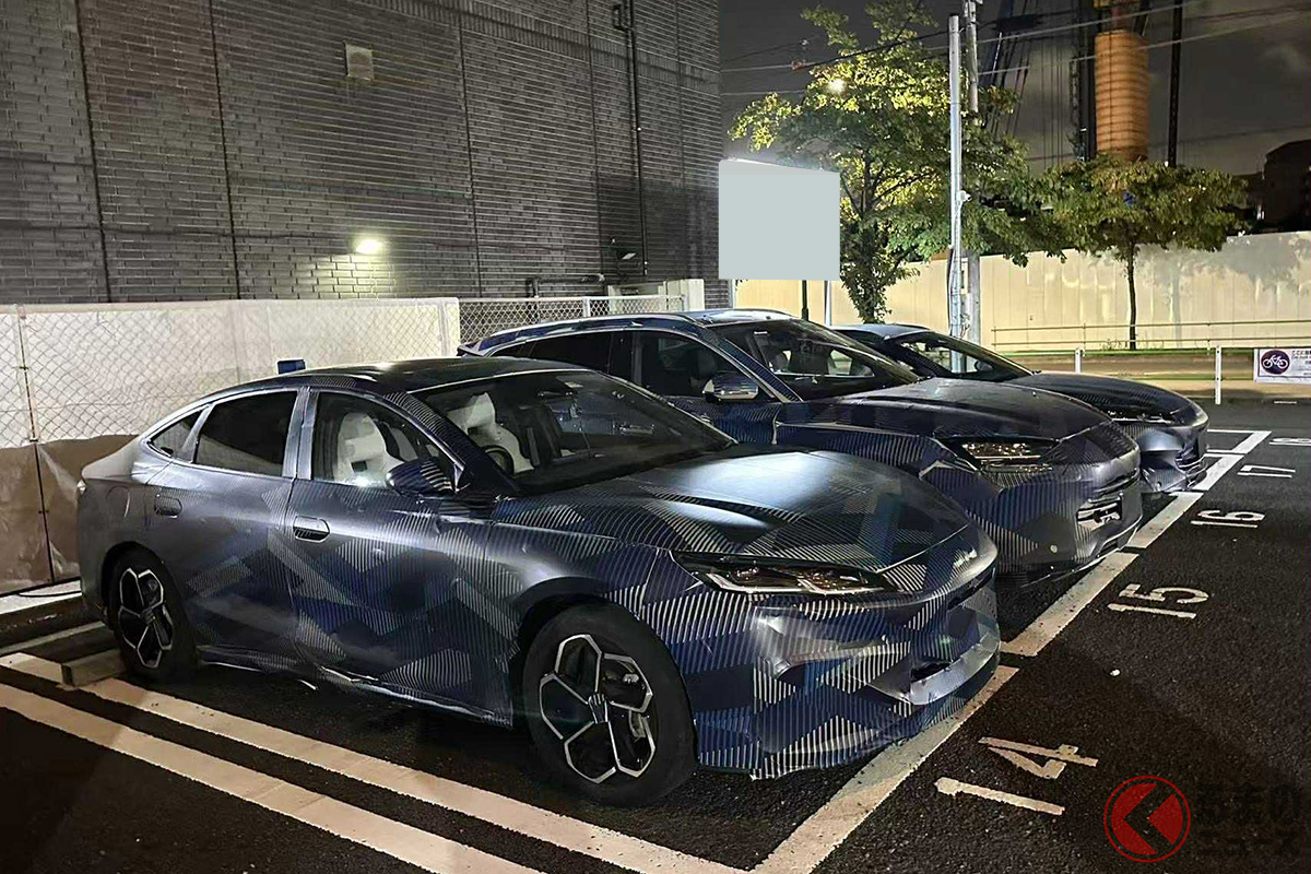 「謎のクルマ」都内で目撃! セダン・SUV・ワゴン3台同時に現る!? カモフラ仕様のBYDモデル? 噂のPHEVか
