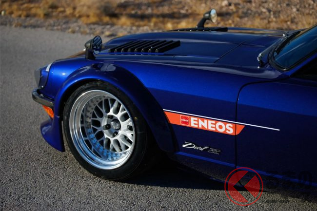 セマショーのENEOSブースに出品されたデビルZは、初代Zの北米輸出モデルである「ダットサン 240Z」の1971年モデルがベース。