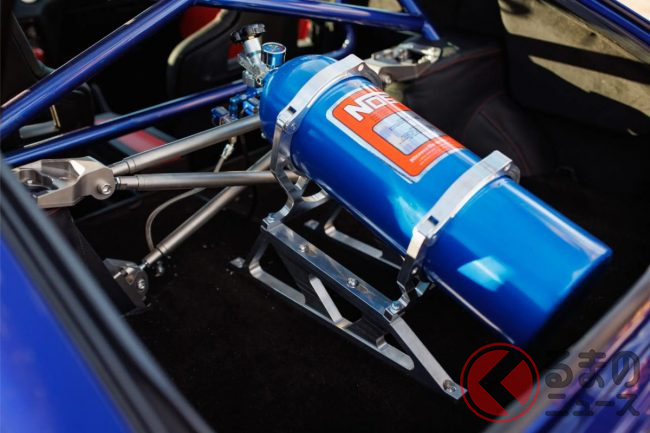 また、ギャレット製「G35-900」ターボチャージャーを装着するほか、燃料供給システムはハルテック「2500」によって電子制御インジェクション化。加えてNOS(ナイトロオキサイドシステム/ニトロ)も搭載し、驚異的なパフォーマンスを実現しました。