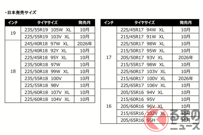 同製品は、ヨーロッパの厳しい環境で求められるオールウェザー性能を高い水準で満たしているといい、新しいコンパウンドの採用により、幅広い温度域に対応できるのが大きな特徴とのことです。