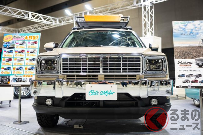 レトロ顔のトヨタ「ライズ」!? 旧車デザイン×ウッドな「新モデル」初公開! 499万円で4WDターボ搭載のCal’s Motor Havana Sand Beach Edition登場