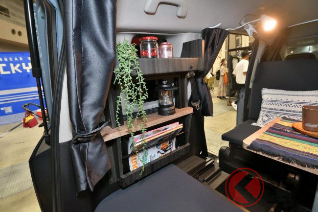 横浜市旭区に店舗を構える「ロッキー2」も、フリードをベースとしたキャンピングカー「フリードクロスター MV」を展示していました。
