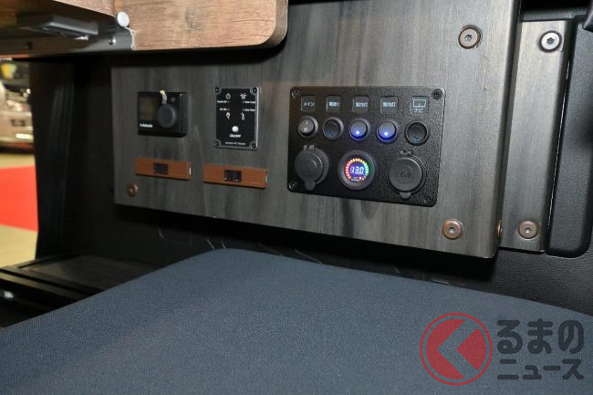 さらに電装キットとして、サブバッテリーや走行充電システム、AC100Vコンセント、外部電源コネクター+ケーブルなどがフルに備わるものでした。