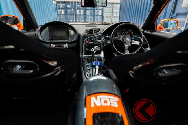 インテリアも同様に、ヴェイルサイド独自のレーシングバケットシートや、ツインアンプを備えたアルパインのサウンドシステム、そしてセンタートンネルに置かれたNOSボトルが、劇中の世界観を色濃く反映しています。