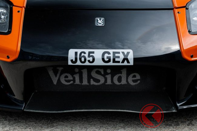 エクステリアにはアフターパーツメーカー「ヴェイルサイド」製のワイドボディキットが装着され、全幅が200mm以上も拡大されています。
