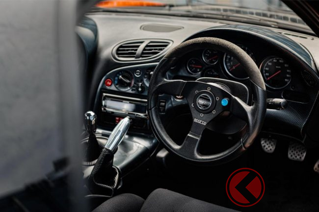 今回オークションにかけられたのは、1991年に登場した3代目、通称「FD3S型」。この世代で最後の限定車「スピリットR」では、全長4285mm×全幅1760mm×全高1230mmのボディに、後期型では最大280馬力を誇る654ccの2ローターシーケンシャルツインターボエンジンが搭載されていました。