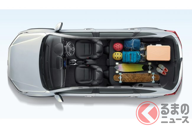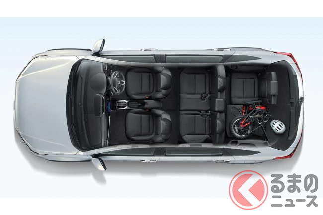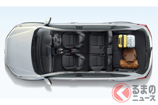 シート配列は2+3+2の7人乗り。2列目は広々としており、3列目も実用的な居住性を確保しています。3列目は50:50分割可倒式で、荷室アレンジの柔軟性も評価されています。