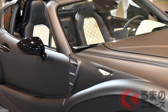 インテリアの多くはロードスターの部品を流用していますが、エクステリアはフロントウインドウ、ドアパネル上部、ルーフにわずかにロードスターの面影を残すのみで、その他の部分はすべて独自に手が加えられており、一見してロードスターと判別するのは難しいでしょう。