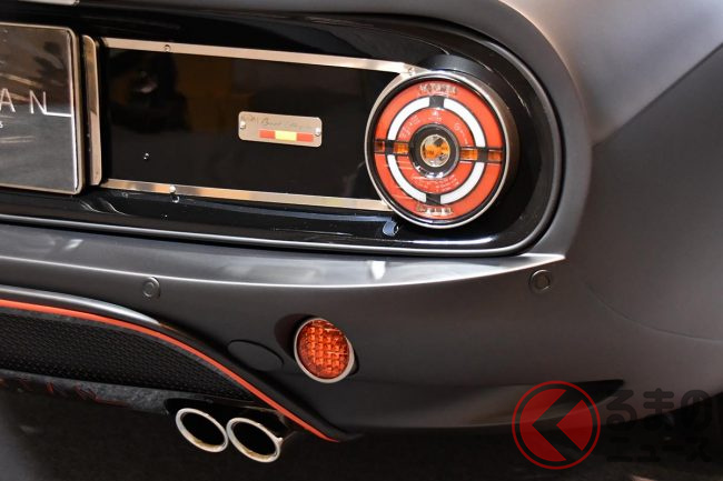 リアエンドには、クラシックカーを思わせる丸形テールランプを採用し、ブラックアウトしたパネルにクロームの装飾ラインで左右のライトをつなぐ、エレガントなデザインが施されています。