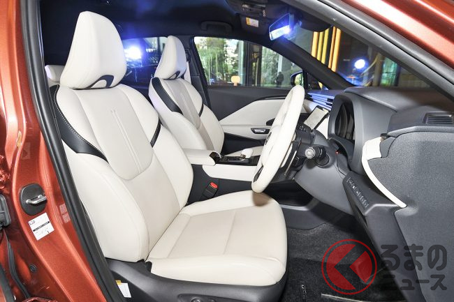 動画から、向井さんのLBX “Bespoke Build”仕様の設定は、ブラックのボディカラーにブラック塗装のアルミホイール、L-ANILINE本革のシート表皮、ソリスホワイトのステアリング&シフトノブ色の組み合わせなのが見て取れます。