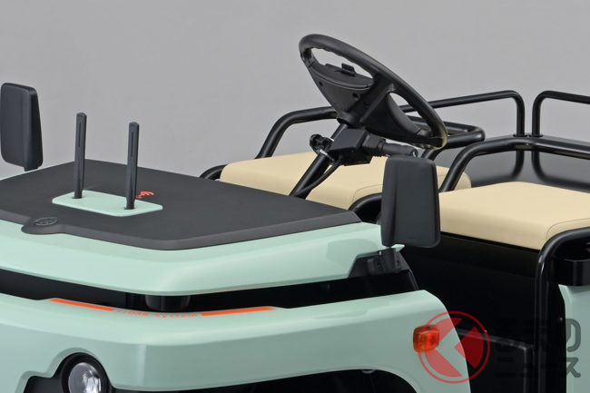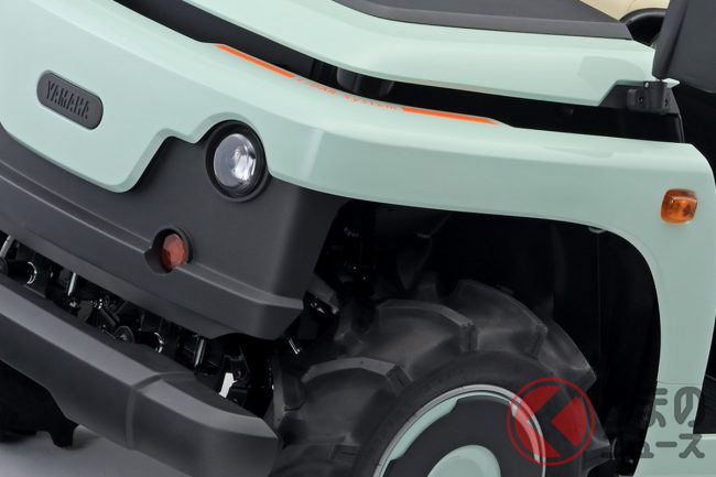 ヤマハの「“斬新”屋根なし軽トラ」がスゴかった! 丸目ライトにゴツゴツタイヤ装着&“横向きシート”に変形できる! 画期的な「果樹園仕様」とは?