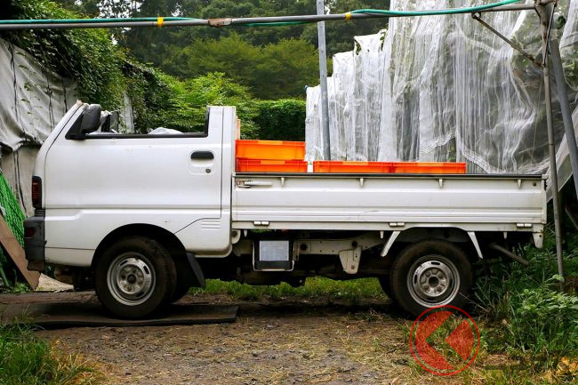 ぶどうや梨など背の低い果樹園では、作業者が腰をかがめる必要があり、屋根のある車両は不便なため、軽トラックの屋根を取り払ったものが現場で利用されることが少なくありません。