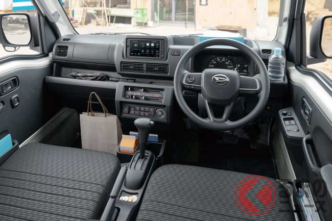 ハイゼットトラック ジャンボといえば、主に働くクルマをイメージさせるモデルですが、担当者は「ローダウンをしておらずノーマル車高で、働くクルマのままのカスタムであることをポイントとしてます」と、純正の良さを活かしたカスタムパーツを製作したと話していました。