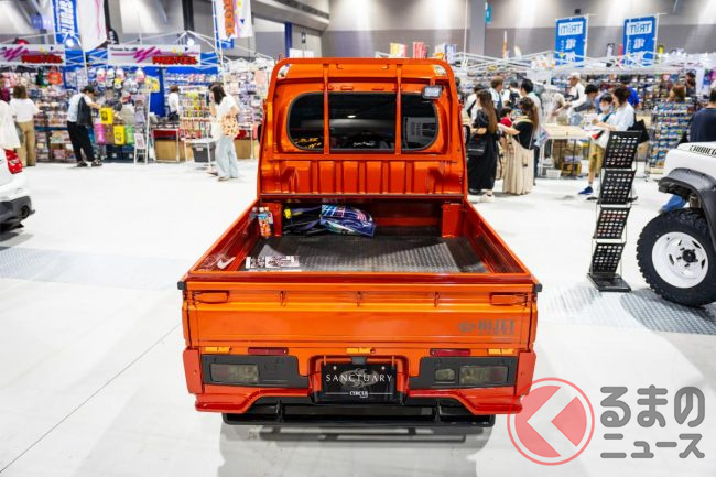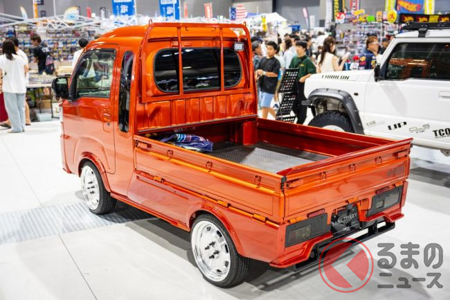なかでも、ドレスアップパーツを展開するサーカスプロジェクトが、ダイハツ「ハイゼットトラック ジャンボ」をベースに、レクサス車を彷彿とさせるカスタムを施した車両を展示していました。