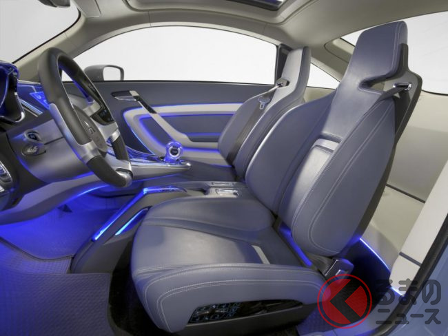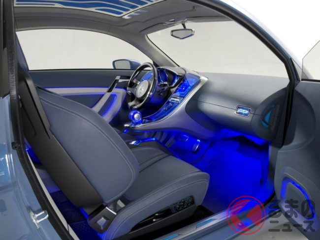ステアリングホイールのセンター部分にレイアウトした液晶メーターや、ダッシュボードに沿った形状のセンターディスプレイ、インテリア全体に広がる淡いブルーの発光など、未来的かつ実用的なアイディアが取り入れられていました。