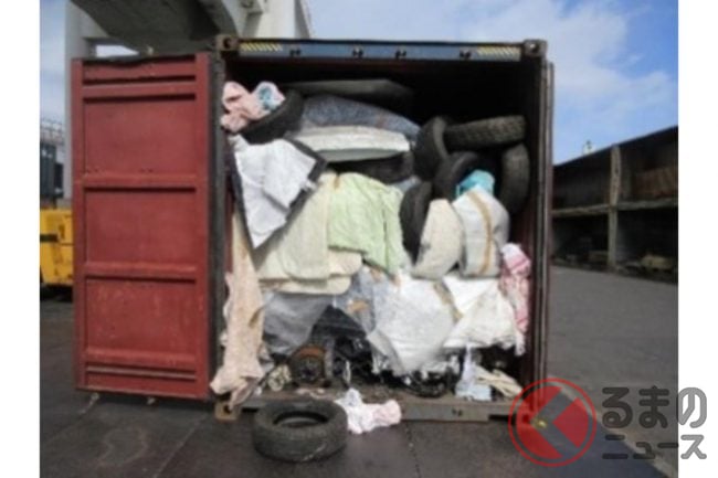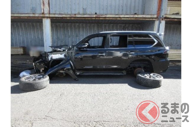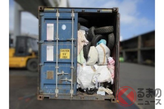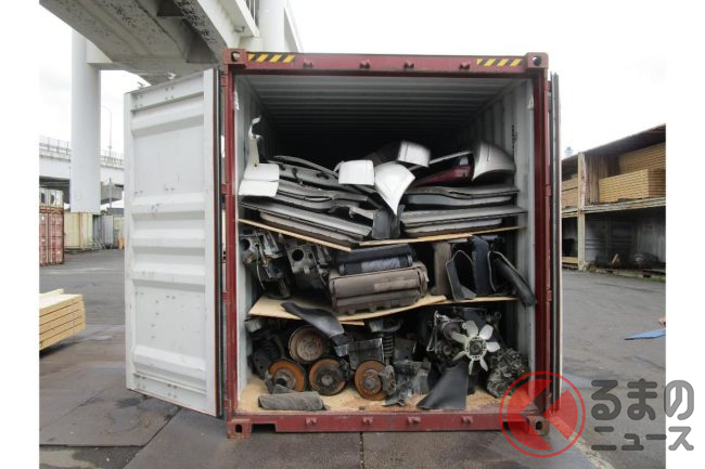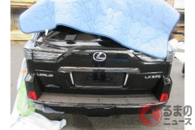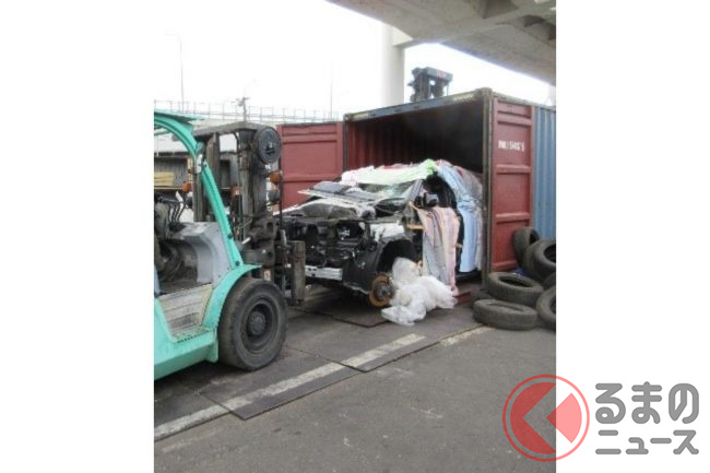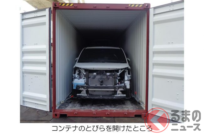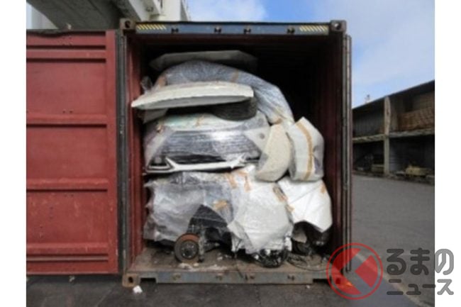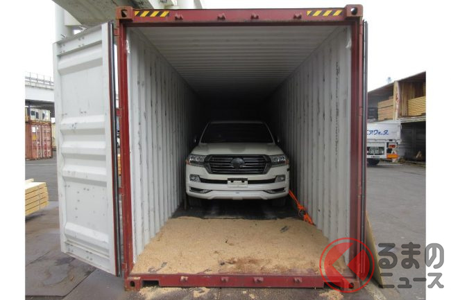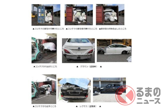 コンテナに詰められているのは、バンパーやタイヤ、ハブナックルなどの自動車部品でしたが、その奥にはトヨタ「クラウン」(15代目・先代モデル/時価230万円)とレクサス「LX」(3代目・先代モデル/時価700万円)の車体が隠されていました。