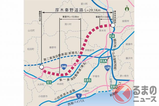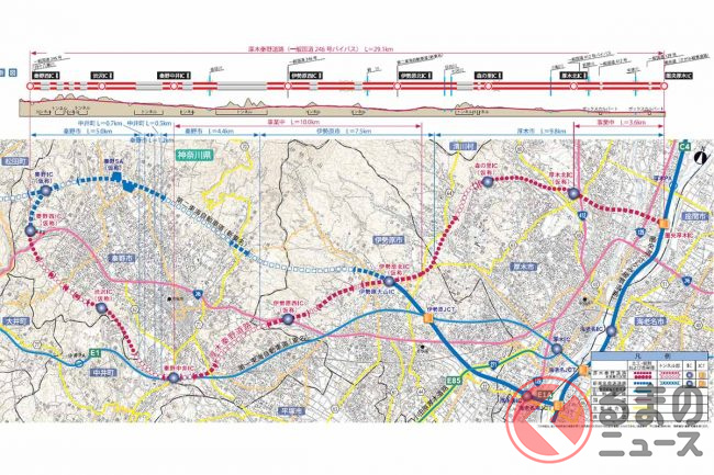 国道246号「“地獄”の伊勢原渋滞」解消へ前進! 神奈川西部“完全スルー”の「大幹線バイパス」が建設進行中! 首都圏と東海地方を結ぶ「厚木秦野道路」とは