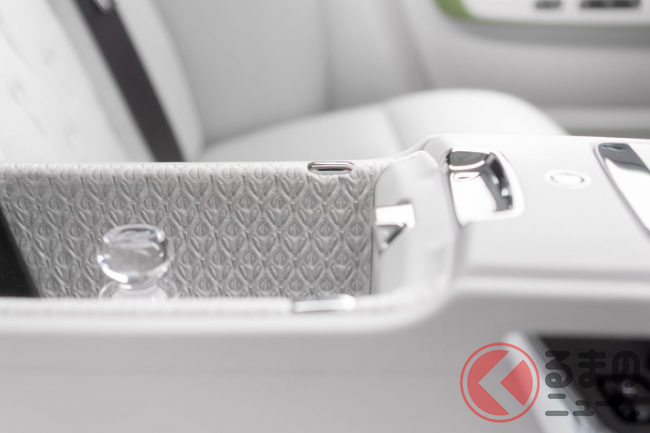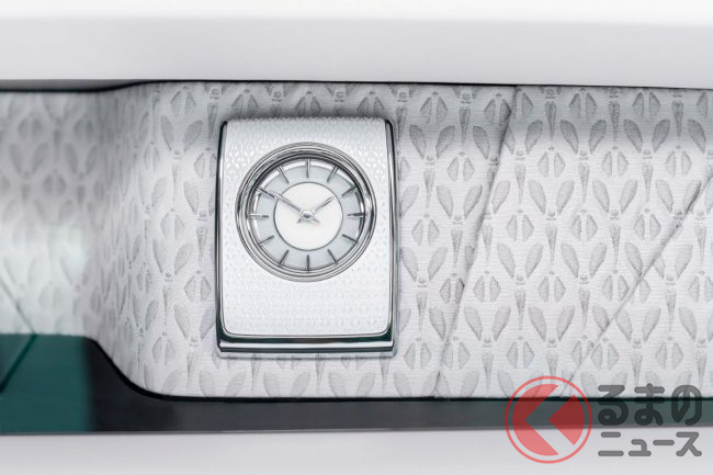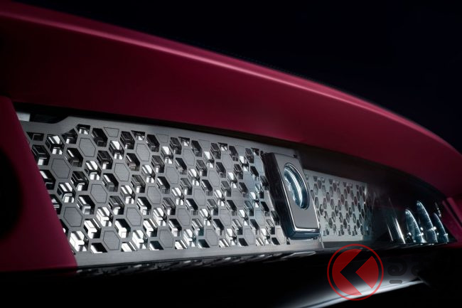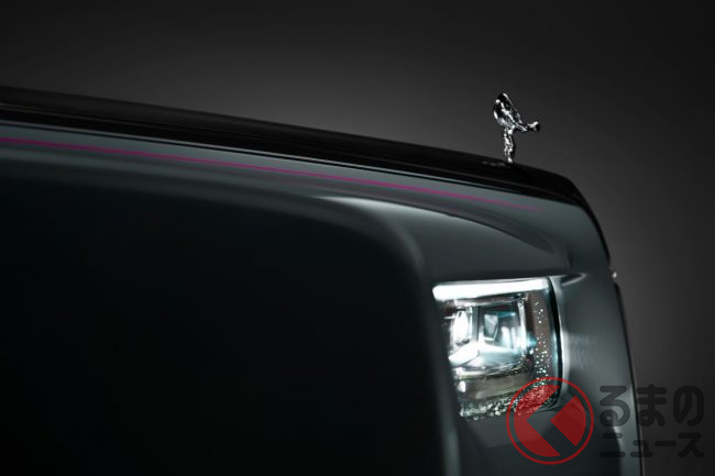 ボンネットにはロールス・ロイスの象徴「スピリット・オブ・エクスタシー」が輝き、パルテノン神殿を模した「パルテノングリル」が堂々たる風格を演出。写真後方をよくみると、ロールス・ロイスの代名詞ともいえる観音開きの「コーチドア」も見受けられます。