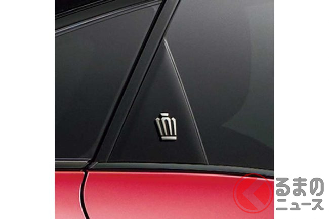 次に「サイドエンブレム(CROWN)」は、立体感のあるハイボスカル素材を採用し、上質なサテン調シルバー仕上げとされています。