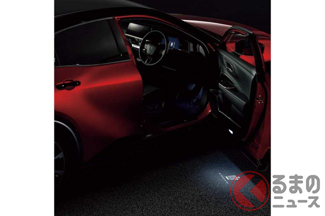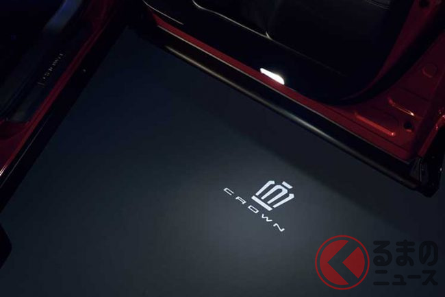 さらに「プロジェクションカーテシイルミ」は、フロントドアのカーテシランプから王冠マークと車名ロゴを路面に照射する装備です。