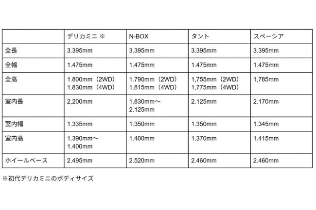 なお新型デリカミニに関して、8月22日時点では一部情報のみの公開となるため、不明な部分は初代デリカミニの数値を参考に表記しています。