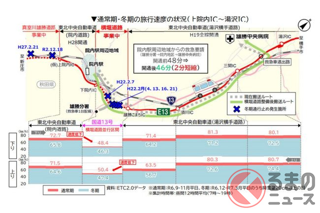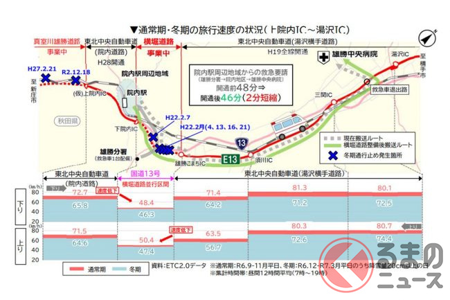 さらに、横手市にある大手自動車部品製造工場が、山形県新庄市に部品を調達しやすくなったり、山形~秋田間の地域連携の促進しやすくなるため、製造業の連携支援や地域観光支援にも一定の効果が見込めるとしています。