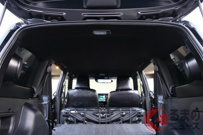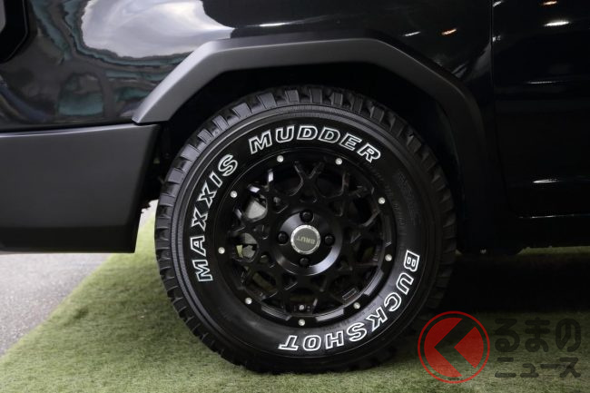 エクステリアでは、ドアハンドルやバックドアガーニッシュなどがブラックの塗装無し仕様。ドア部分のピラーも無塗装です。