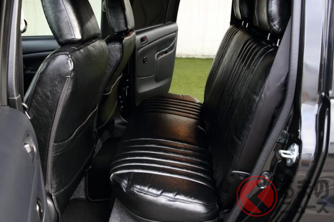 リアシートについても、安価な塩化ビニール素材のヘッドレストのないタイプを採用。