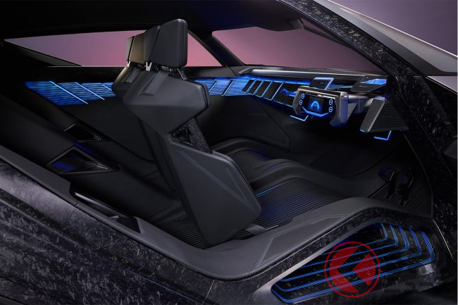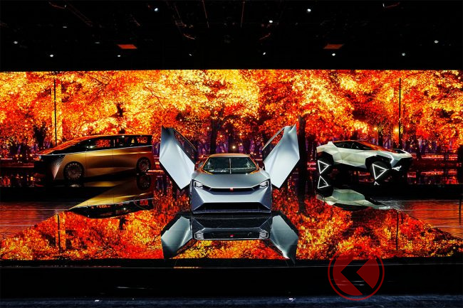 そのシルエットや、象徴的な丸型4灯テールランプなど、デザインの随所に、GT-Rの存在を感じられるモデルで、パワートレインには、最高出力1000kW(約1360PS)のモーターを搭載するBEV(バッテリーEV)です。