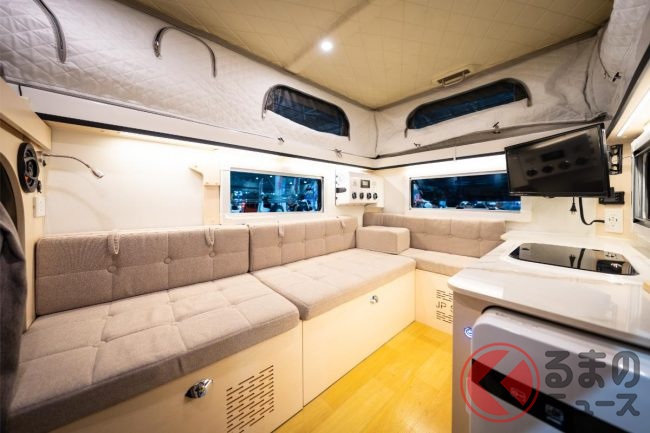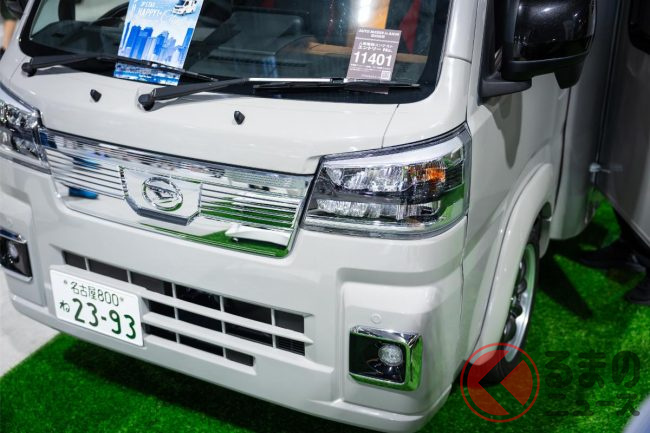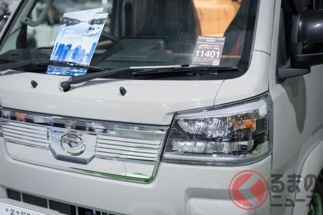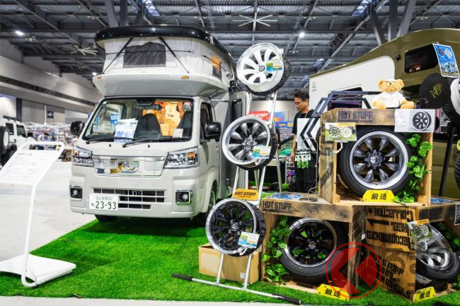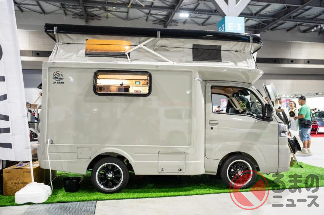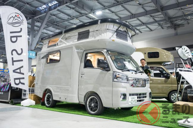400万円! 4人乗れる「“軽規格超え”軽トラ」Happy1+ city TYOに反響多数! ダイハツ「ハイゼットトラック」ベースの「超広々仕様」に「YouTubeでみた!」「見た目より広そう」の声も! 4人寝られるJP STARキャンパー展示に“熱視線”集まる!
