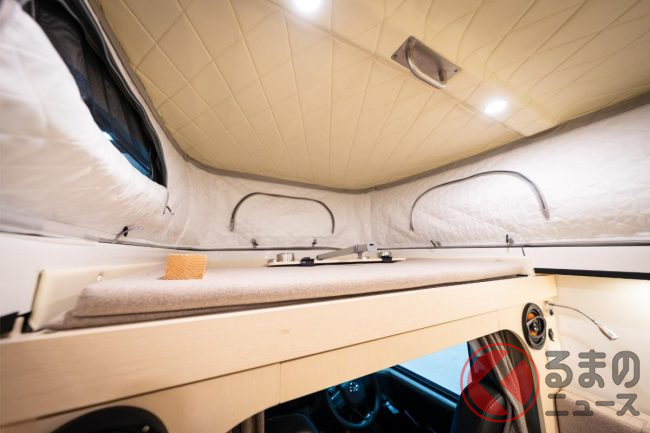 ほかにも車内ではベッドへと組み換えが可能なソファが備わり、ベッドサイズは、幅120cm×奥行き210cmと、セミダブルサイズほどのベッドとしての利用が可能です。