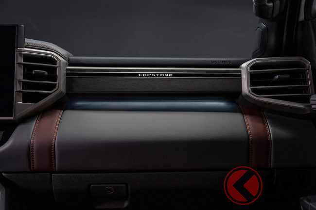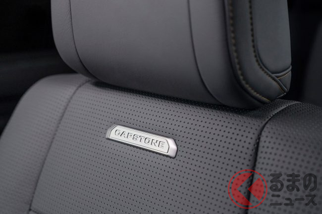 最上級グレードの「キャップストーン」では、シートや内装トリムに「シェール プレミアム テクスチャード」と呼ばれる新素材を採用。石材を思わせる落ち着いた色合いと手触りが、上質感をいっそう高めています。