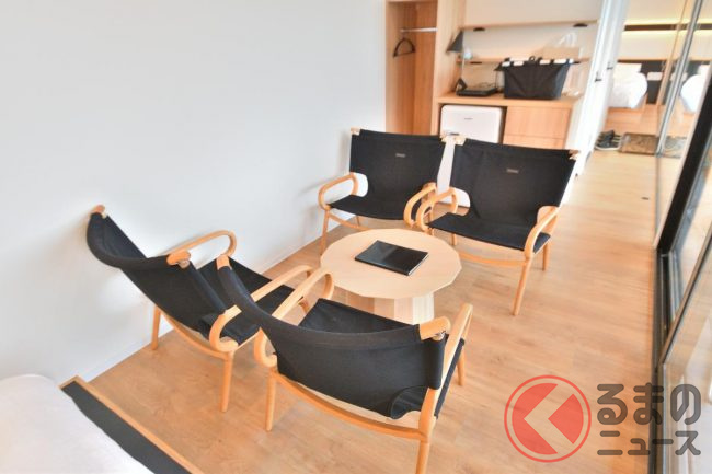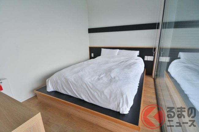 ガラス張りの開放感あふれる部屋にはきちんとリビングのようなスペースもあり、ワーケーションも捗りそう。値段は3万7000円/1泊からとなり、4名まで宿泊できる(ダブルベット2つ)ので、4名が集まれば、1人当たりの負担はそう多くはありません。